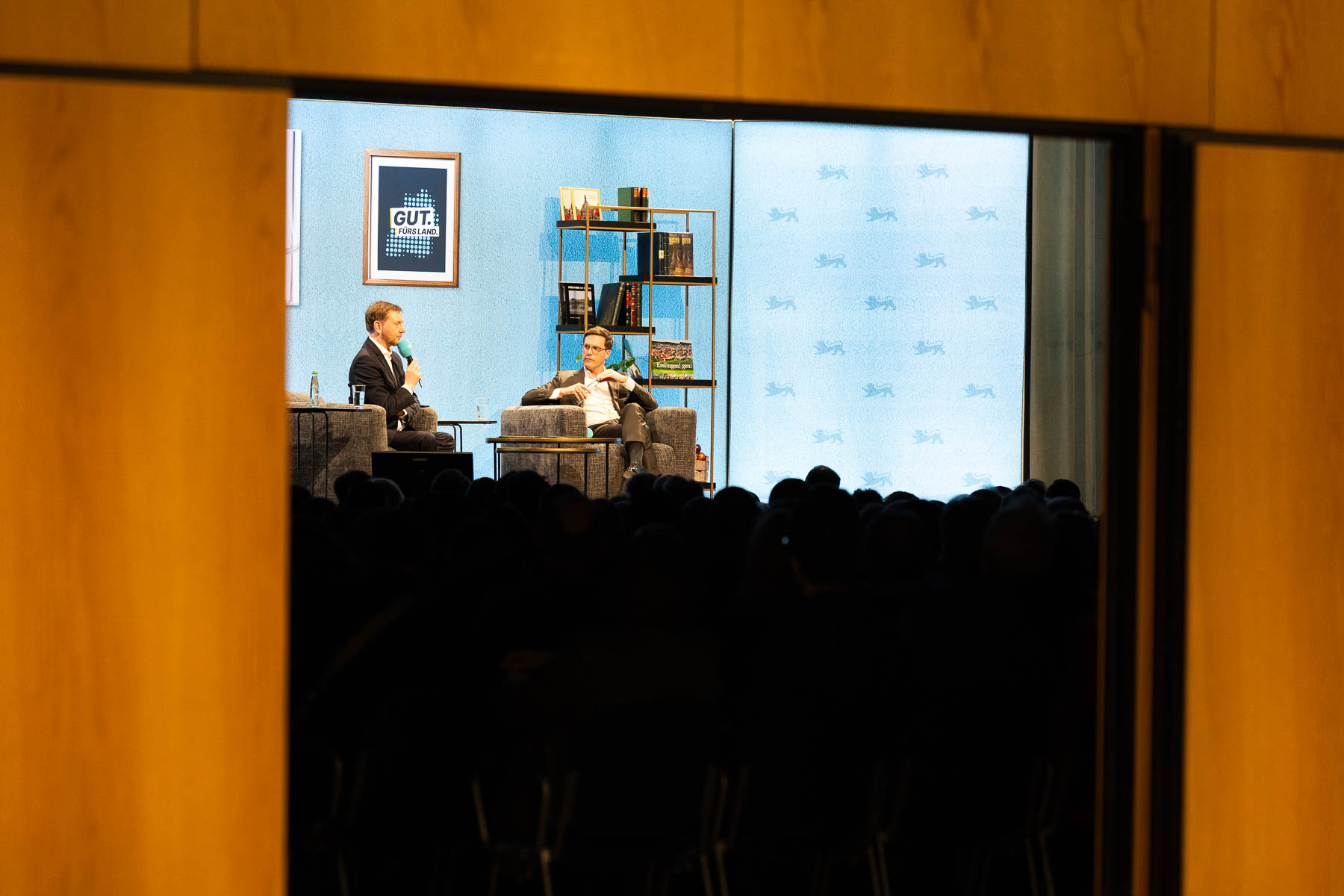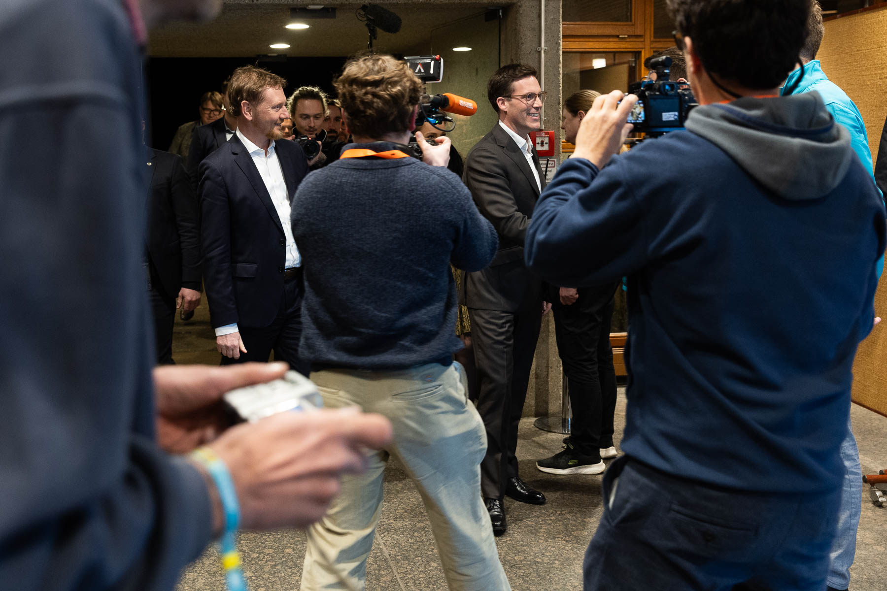 Besonders authentische Bilder entstehen häufig abseits der Bühne – etwa bei Gesprächen mit Gästen oder spontanen Begegnungen. Dies habe ich gleich zu Beginn der Veranstaltung dokumentiert, als die zwei Redner die Halle betraten.